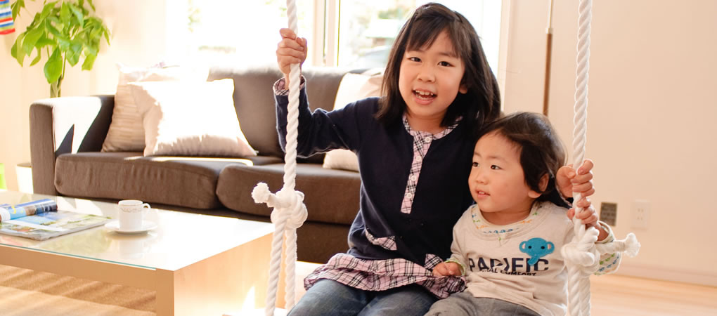 リビングでブランコをしてみんなで遊んだことが将来、我が家での楽しかった思い出としてお子様の記憶に刻まれるのでしょうね。 -