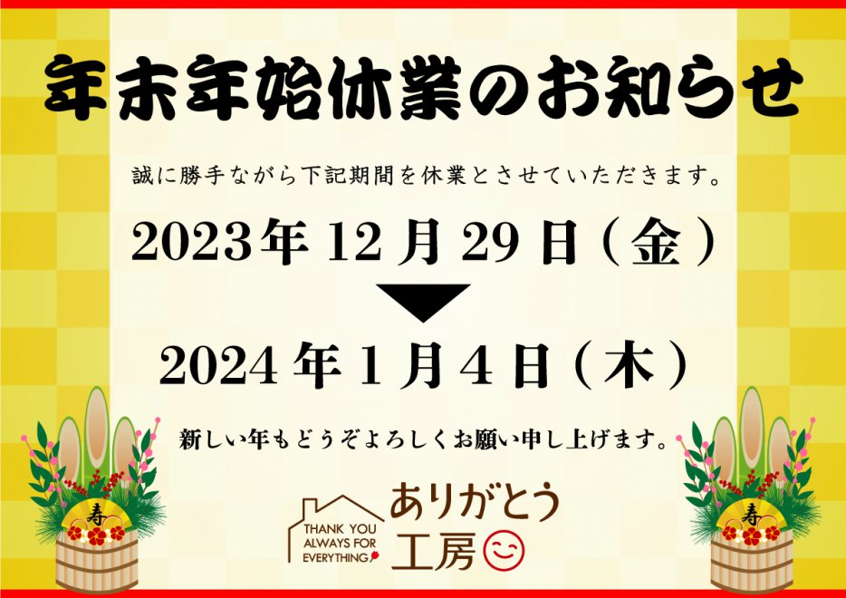 【年末年始休業のお知らせ】