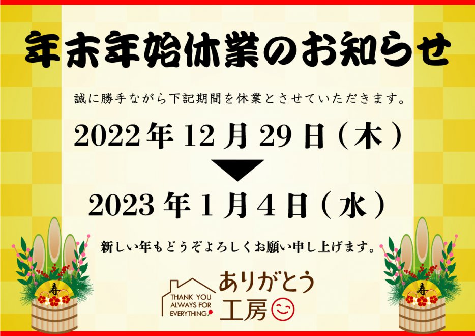 年末年始休業のお知らせ